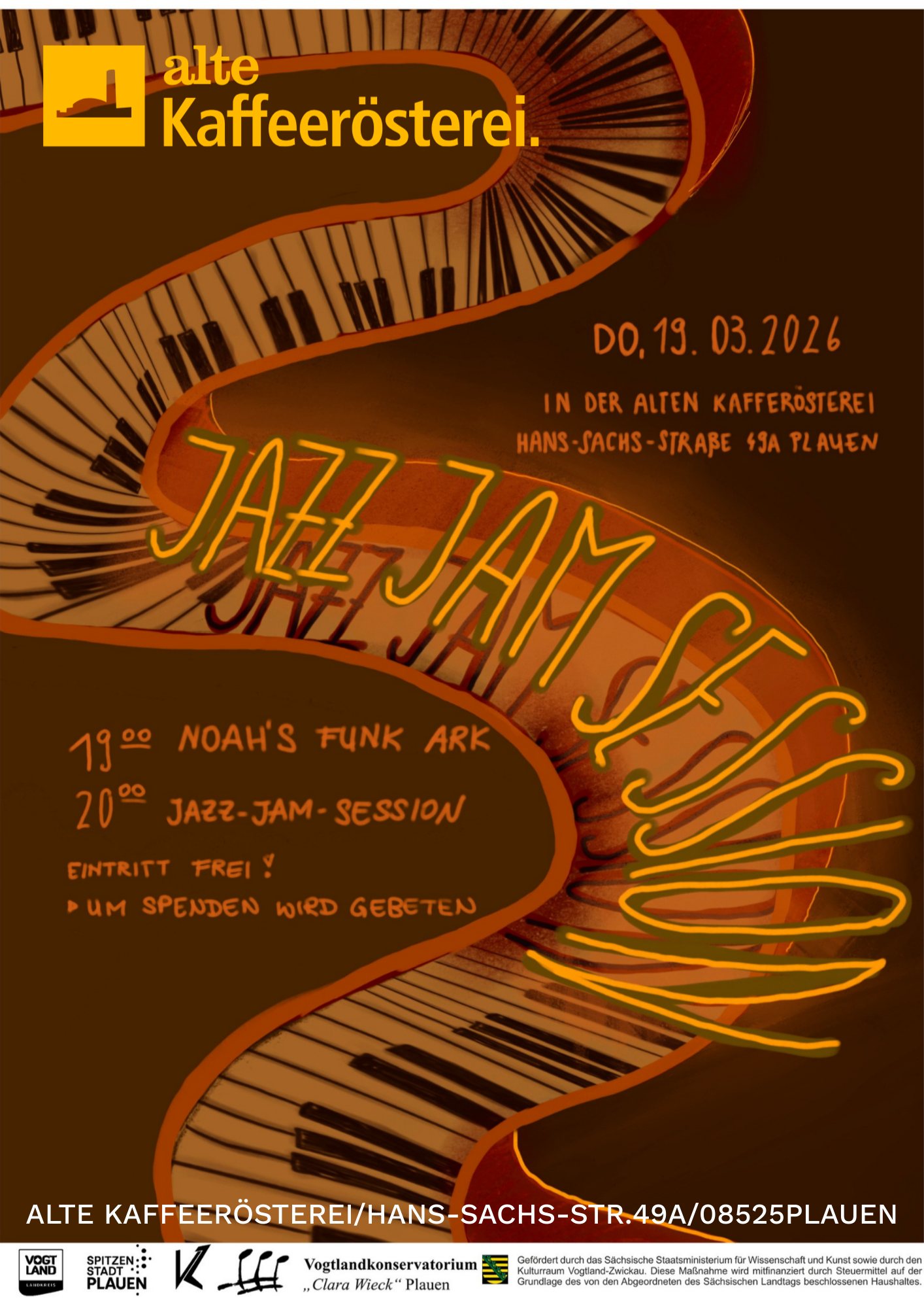 Wir laden zur Jam Session in die Alte Kaffeerösterei (Hans-Sachs Straße 49a in Plauen) ein!